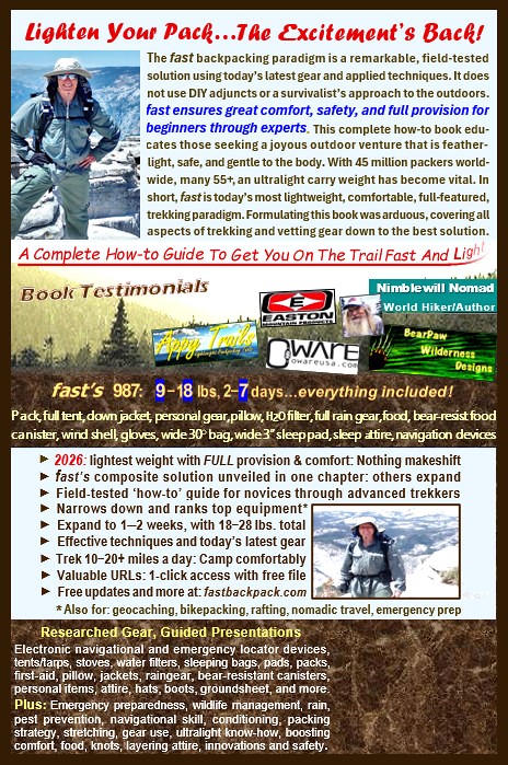 Order this cutting-edge backpacking book "FAST Backpacking" from Amazon, Barnes & Noble, and other suppliers.